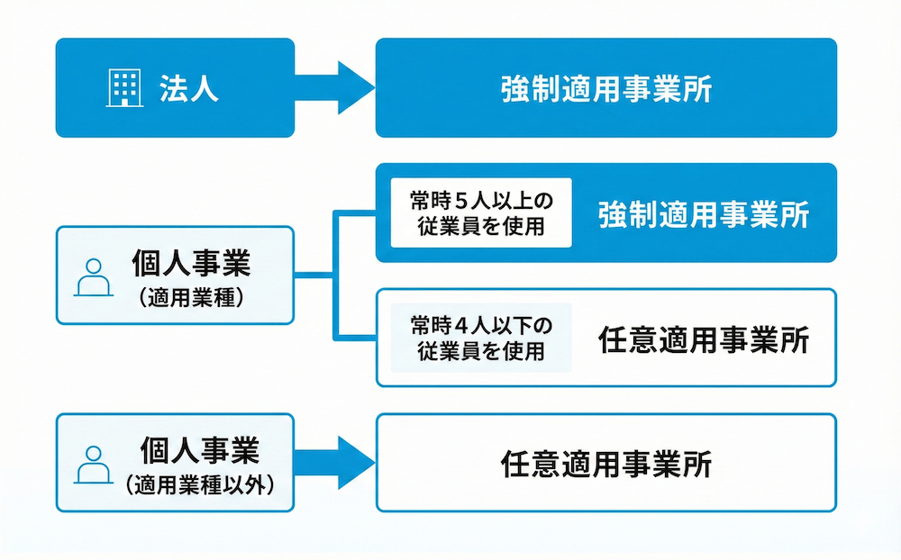まず、事業所としてそもそも社会保険に入らなければならないかどうか(強制適用事業所に当たるかどうか)を確認し、そのうえで、どの従業員を被保険者として加入させるかを判断する、二段階の構造になっているからです。