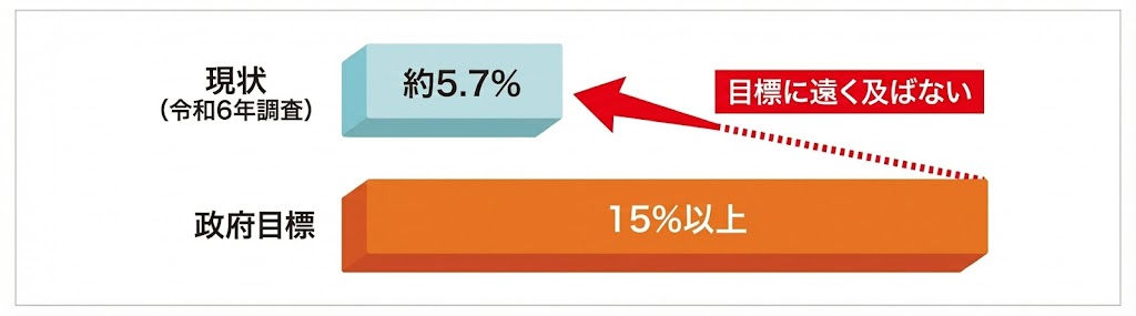 重要性が叫ばれているにもかかわらず、日本企業の導入率は約5.7%「厚生労働省の調査(令和6年就労条件総合調査)」と低迷しています。