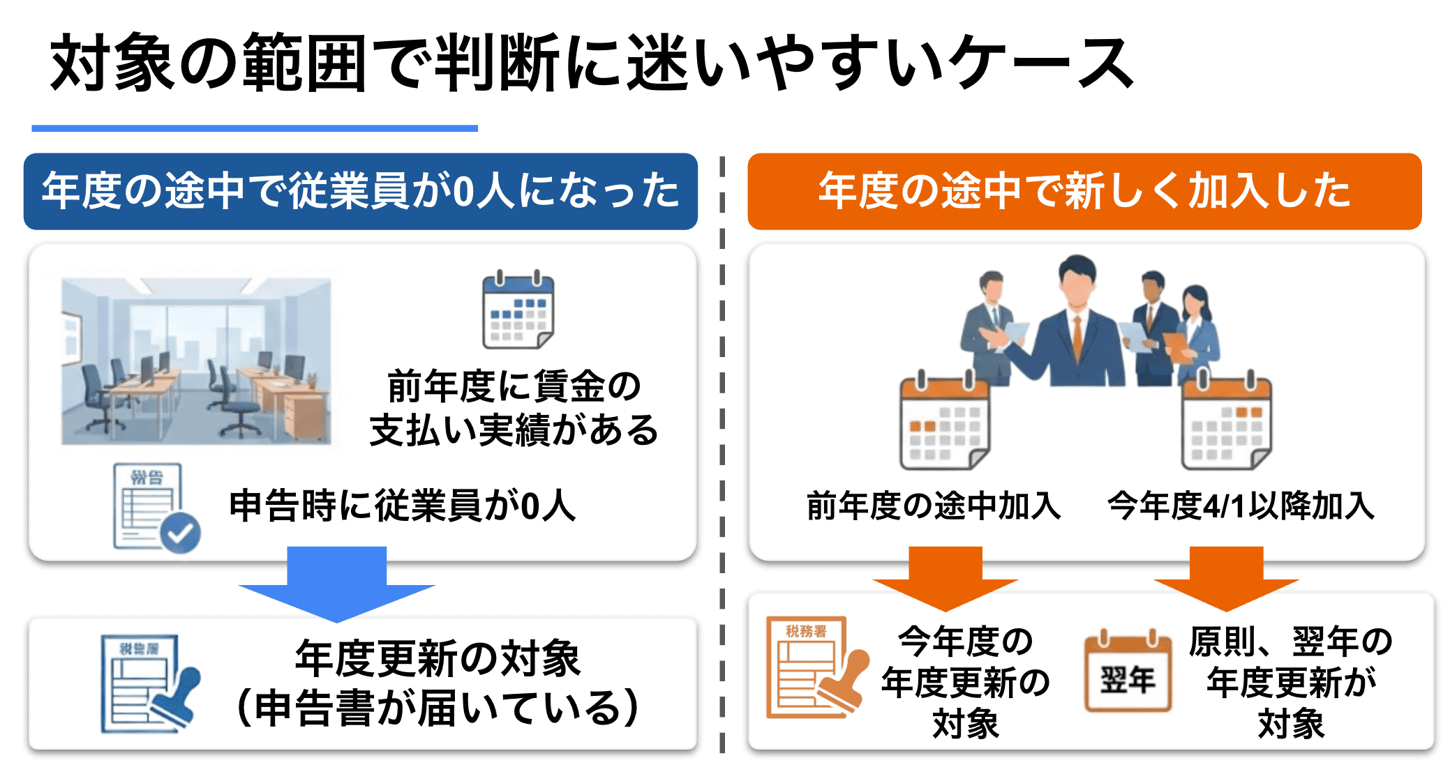 年度更新が必要かどうかは、労働保険に加入した時期によって異なります。